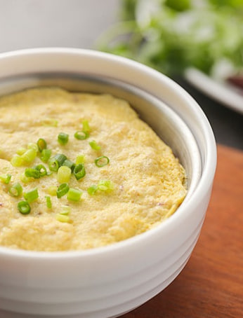 찜기에 물을 끓이고 계란물을 넣은 그릇을 올려주세요. 중불에서 10-12분간 쪄주시면 됩니다. 젓가락으로 찔러봐서 계란물이 나오지 않으면 완성!